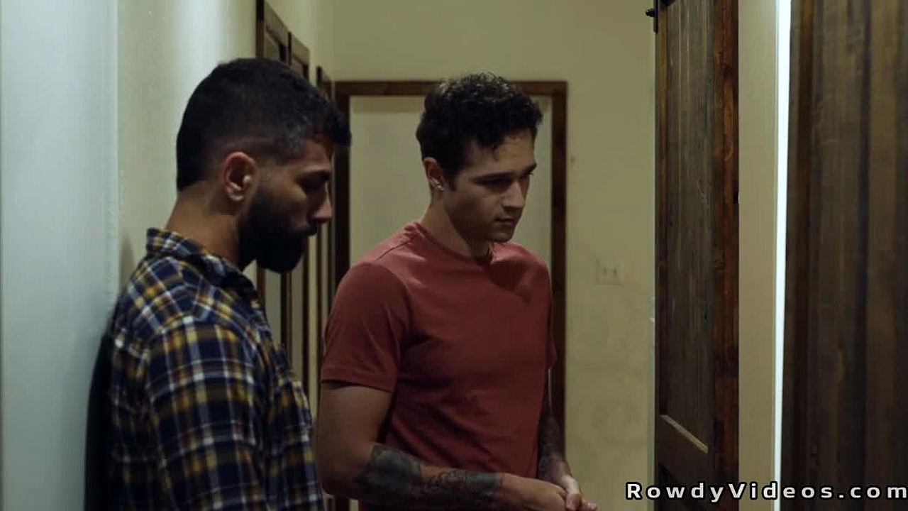 Handsome gay couple goes bareback with intense monster cock action and hot cumshot