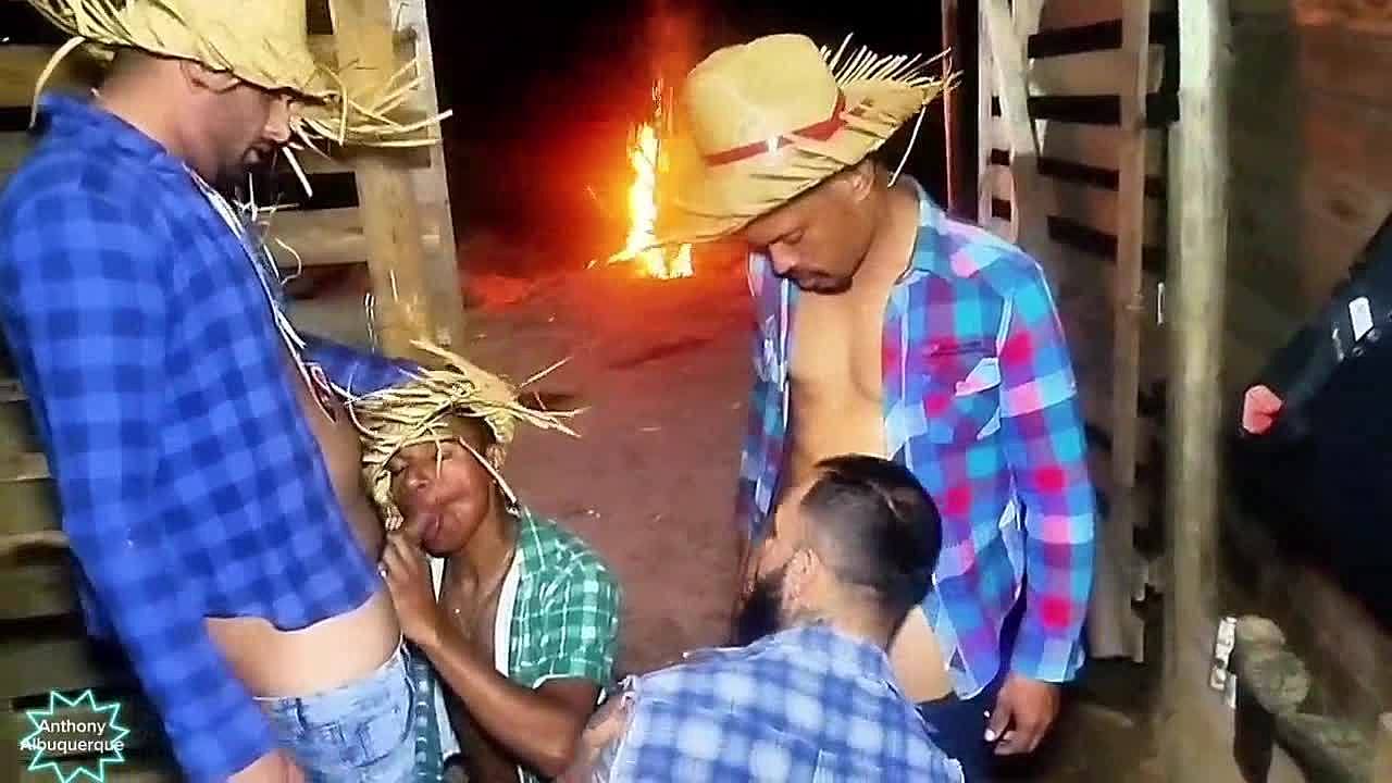 Caipira pauzudo gets wild with huge cocks at junina party.