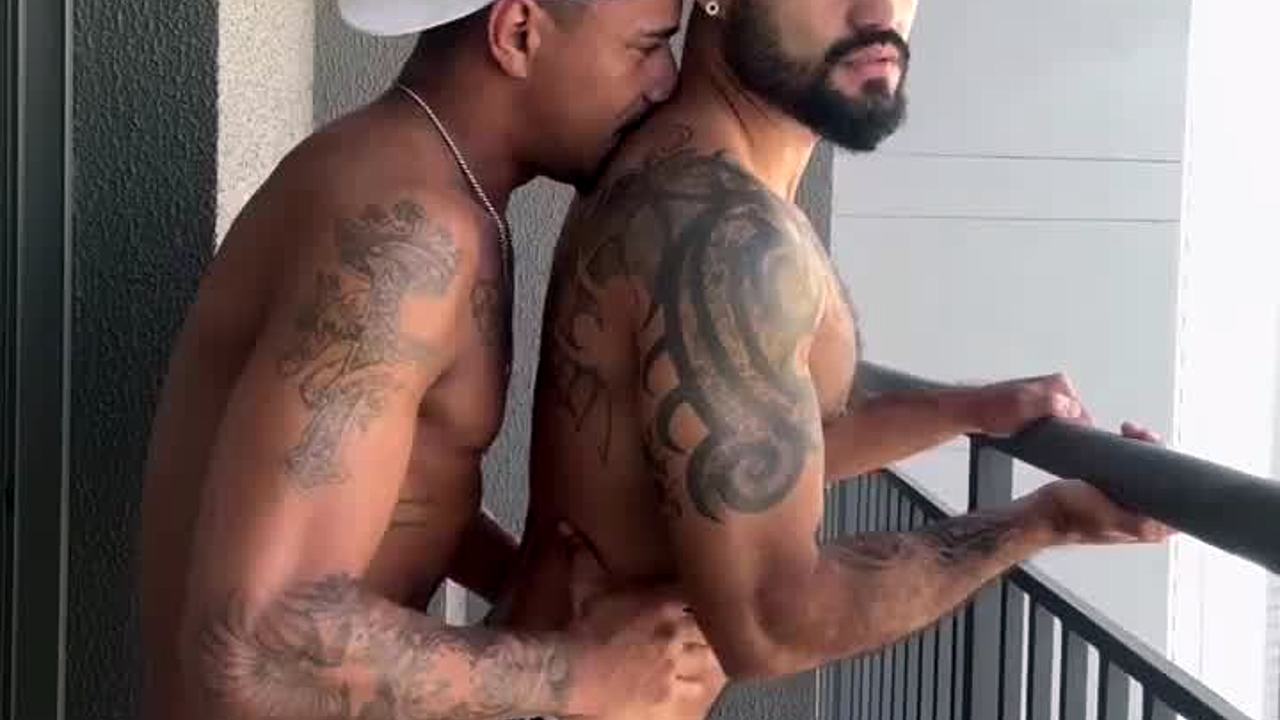बिल्डिंग बैल्कनी पर रॉ एनर्जी के साथ हार्ड बैंग कर रहा हूं।