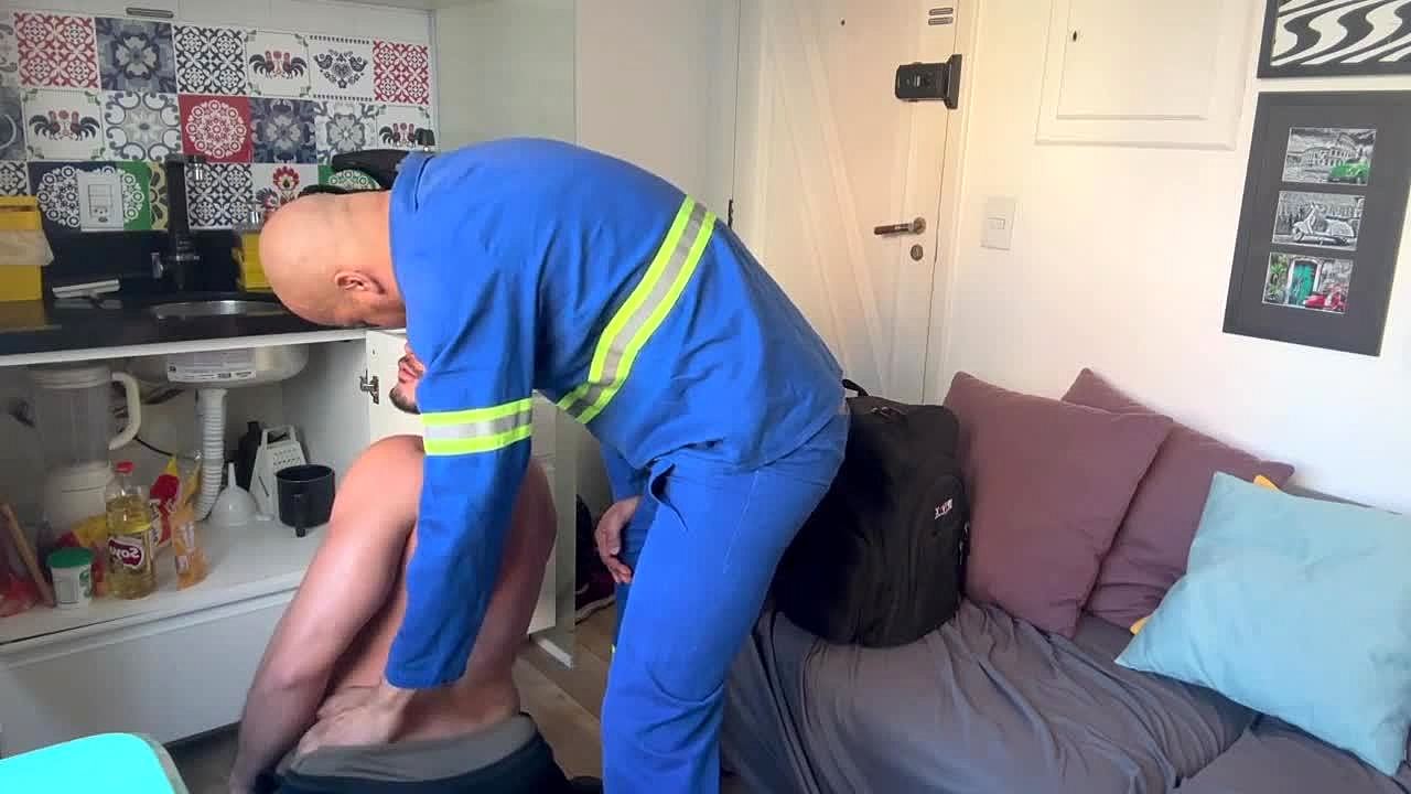 प्लंबर गाय के साथ हॉर्नी हो जाता हूं और उसकी गैंड को जोर से मारता हूं 😈