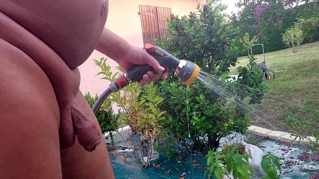 Oh wow, look at me watering plants totally naked in the garden! Who knew flashing solo in nature could feel this wild and exhibitionist!