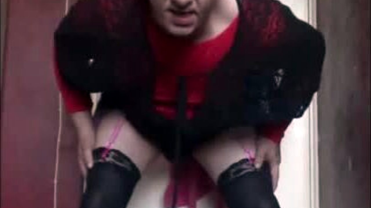 Crossdressing Mark Wright Pisses and Swallows Hard!